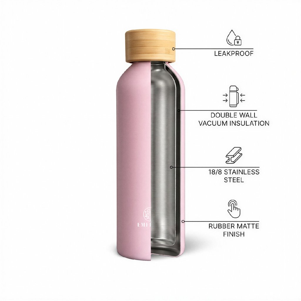 EMFIORE Bamboo Eco Bottle nie je len obyčajná fľaša na vodu. Je to premyslený každodenný doplnok, ktorý spája funkčnosť, estetiku a udržateľnosť do jedného čistého celku.